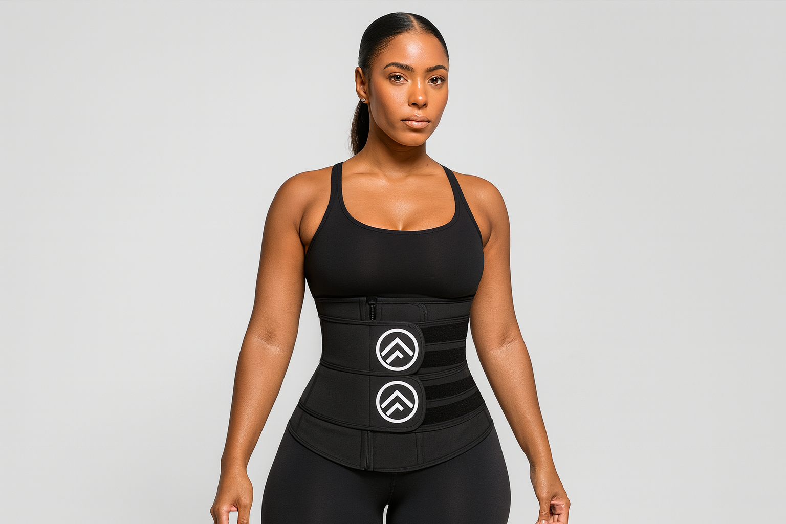 FitnFem Sweat Waist Trainer, Neoprene Workout Corset Cincher Trimmer Shaper Belt - No Roll-Up Solid Double Strap Zipper Waist Trainer Belt Women's Fajas Summer, Custom Neoprene Nylon Shapes Sleek Comfortable Sexy Compression Underwear Workout Lady